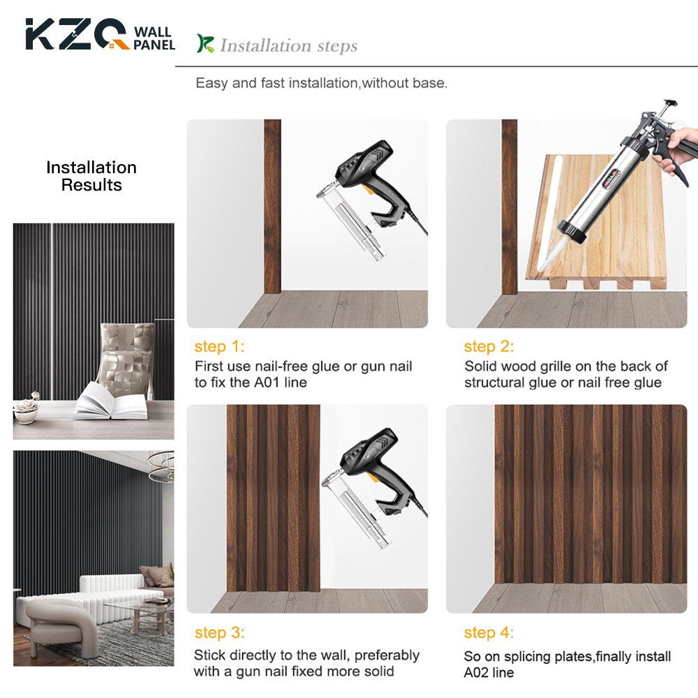 Solid Wood Grille Grooved Wall Panel is an interior wall covering made of solid wood, specially designed for interior decoration. The surfaces of these panels have grooves or channels that give them a unique decorative look. The panels are made of real natural wood, giving it an authentic and luxurious look. Solid wood is known for its durability and longevity, making these panels suitable for indoor environments. Panels are treated or coated for water repellency or water repellency. This feature ensures that the wood is protected from moisture, making the panels more durable and less likely to be warped or damaged by water. The wood used in the panels is treated or naturally resistant to decay. This makes them ideal for use in environments with a high risk of corrosion or in coastal areas where salt exposure may be an issue. Grooves or channel designs in the face of the panels add a decorative element to the walls. These grooves can vary in size and pattern, providing flexibility for creating different aesthetic styles.